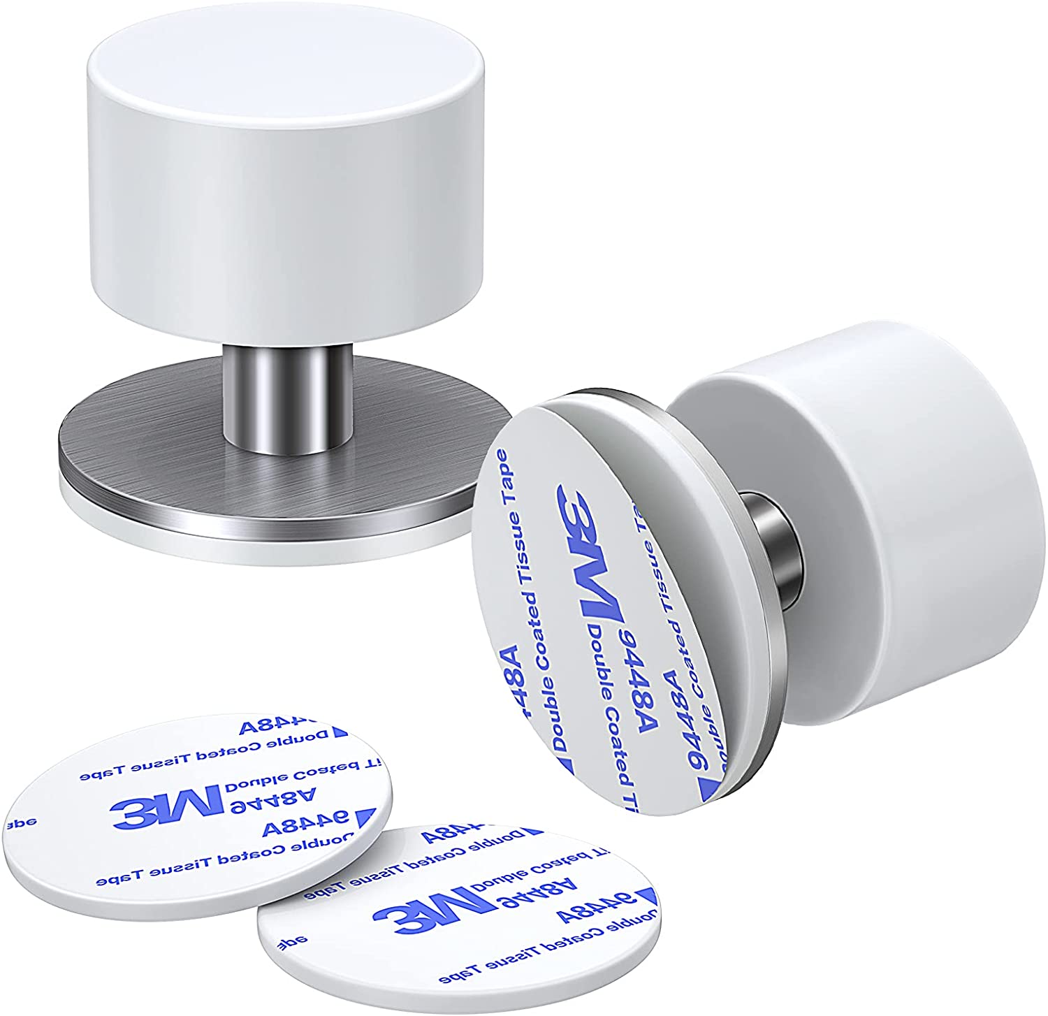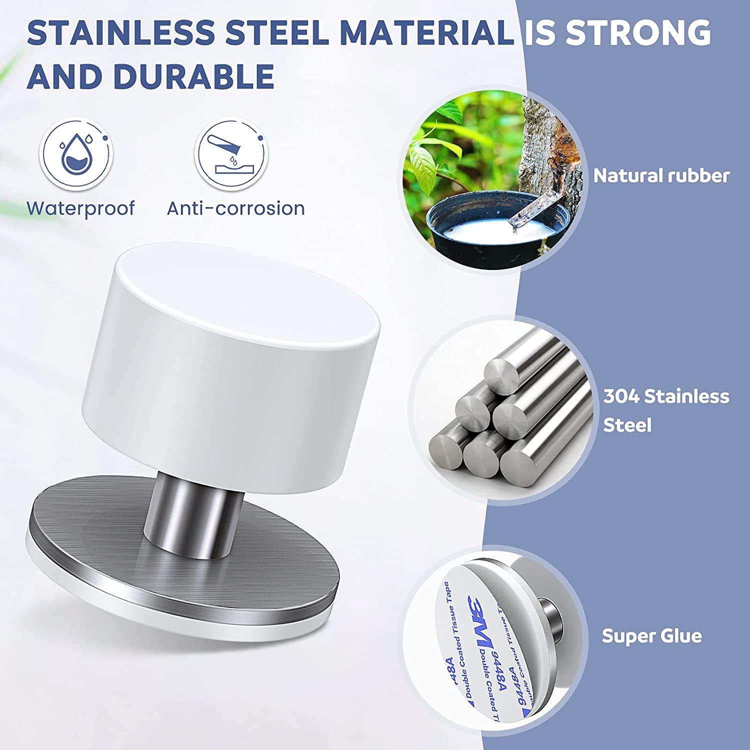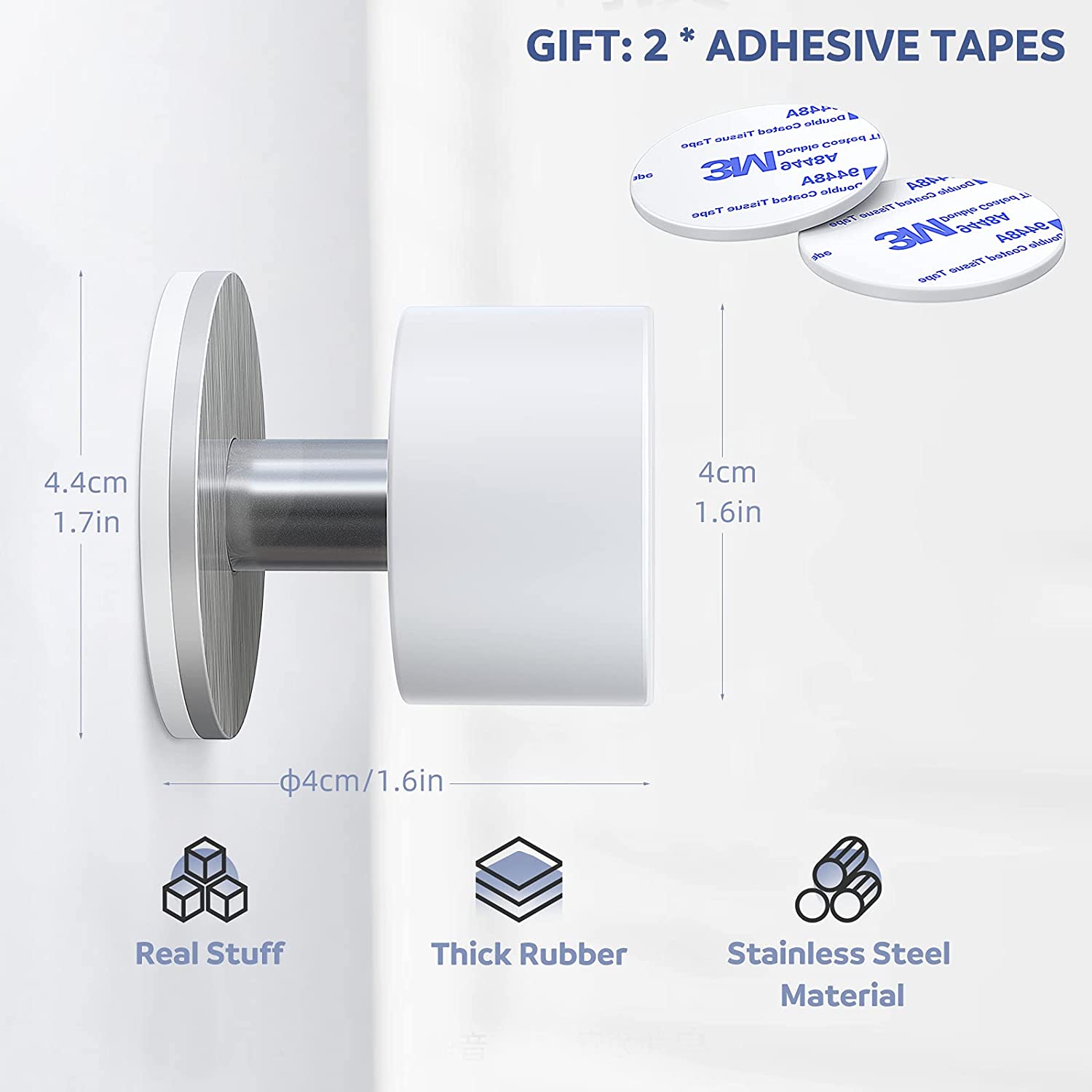 Lanpard 2 Pack Self-Adhesive Door Stops, Stainless Steel Rubber Stopper with Sound Dampening Rubber Top, Door Stoppers and Extra Sticker (White)